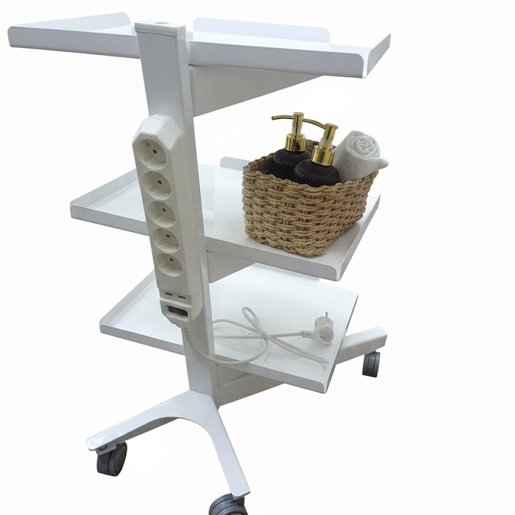Столик имеет 3 полки с отогнутыми вверх бортиками, которые предотвращают скатывание и падение мелких предметов с поверхности полок.