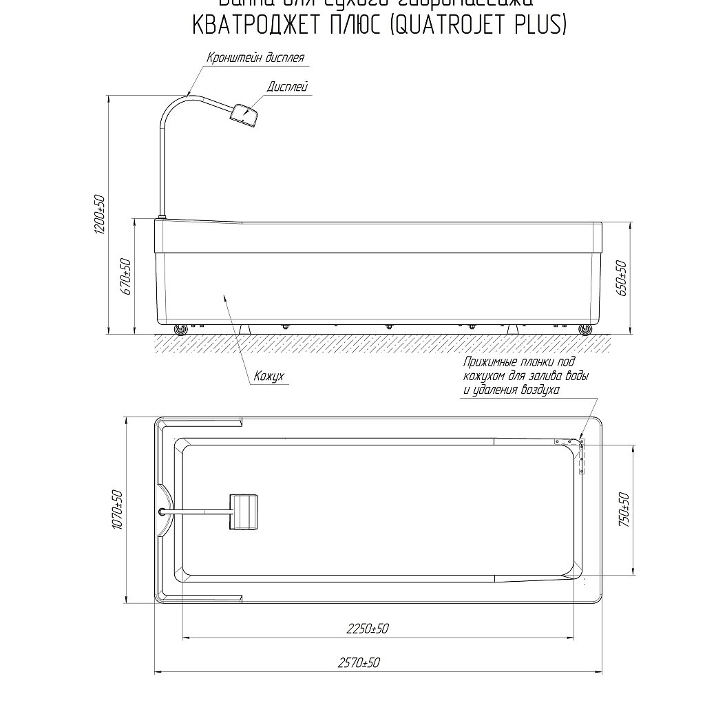Ванна для сухого гидромассажа КВАТРОДЖЕТ Плюс предназначена для воздействия на мягкие ткани тела человека при помощи струй воды, но без непосредственного контакта с жидкостью, с целью оказания болеутоляющего действия, устранения хронических воспалительных процессов, улучшения кровоснабжения и трофики массируемых мягких тканей и внутренних органов благодаря рефлекторному механизму, облегчения выведения лишней жидкости из организма, создания расслабляющего и успокаивающего эффекта, активизации метаболизма. Основным отличием модели КВАТРОДЖЕТ Плюс от базовой версии КВАТРОДЖЕТ является наличие двух гидромассажных насосов, создающих более высокое давление при работе 4-х форсунок и значительного расширения алгоритмов массажа за счет полностью переработанной системы движения каретки.