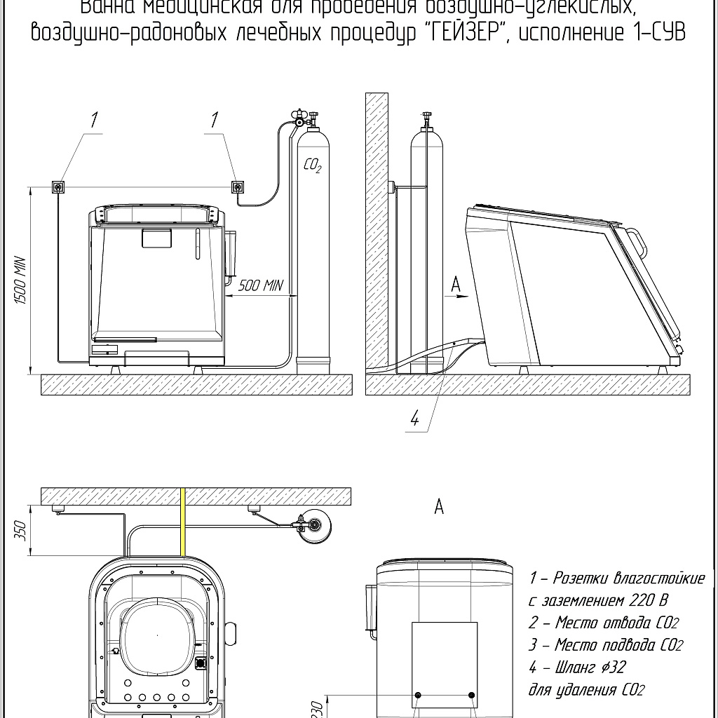 Ванна медицинская для проведения воздушно-углекислых, радоновых лечебных процедур ГЕЙЗЕР